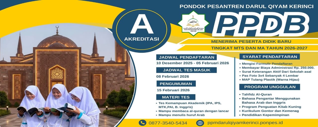 Informasi Penerimaan Peserta Didik Baru Pondok Pesantren Modern Darul Qiyam Tahun Ajaran 2026/2027.